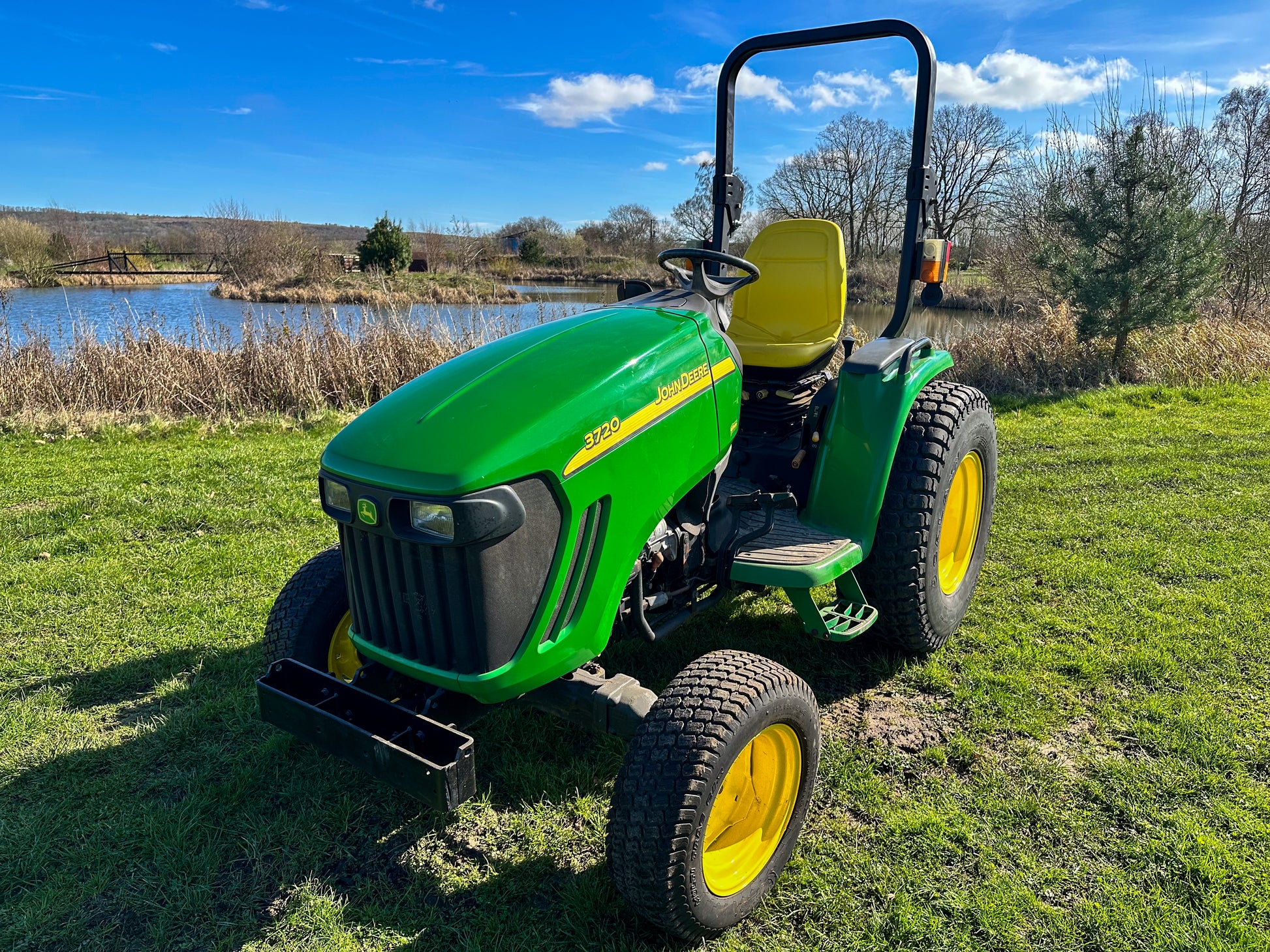 Looking for a dependable, well-maintained used compact tractor for sale? This John Deere 3720 delivers 44HP and is fitted with a hydrostatic transmission, making it perfect for tasks requiring precision and ease of use, like mowing, light loader work, or towing.